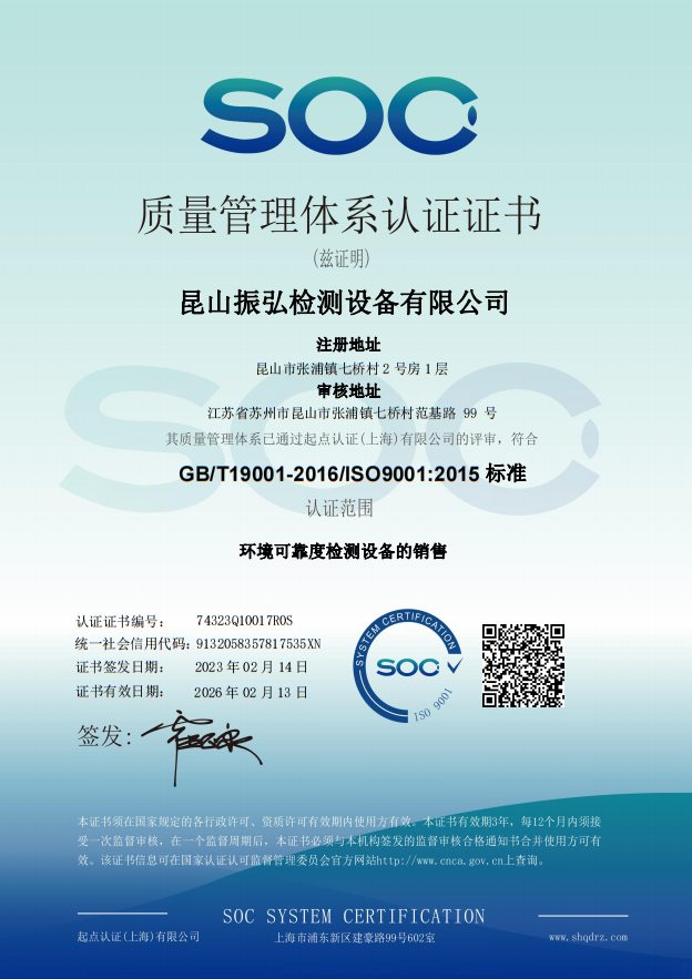 <p style="text-wrap-mode: wrap;">昆山振弘检测设备有限公司是中国领先环境可靠性测试设备专家,是一家拥有研发、生产及售后服务的队伍,可根据客户的需求,提出相对应的解决方案。并积极投入新能源、锂电池、汽车配件、半导体、光电、通讯、电脑及3C产品、电子电工、科研院校、检测单位、航太、军工、生物科技、食品、化工、制药等行业所需的环境可靠性测试设备。</p><p style="text-wrap-mode: wrap;">主营:恒温恒湿试验箱、高低温试验箱、快速温变试验箱、高温烘箱、高温老化房、三综合试验箱、机械冲击试验机、振动试验机、模拟运输振动试验机、包装跌落试验机等。</p><p style="text-wrap-mode: wrap;">从成立之日起至今,一直秉持服务贡献于社会,以人为本的发展理念,一直在不断的创新发明可靠性测试设备,公司研发销售的整合性环境测试设备有效解决了传统的可靠性测试方案的不足,并成功申请获得了国家技术专利,并且我司是美国网件(NETGEAR)唯一指定的可靠性环境测试设备供应商。公司秉承严谨的质量管理理念,通过并严格贯彻实施ISO 9001: 2015 质量管理体系。</p><p style="text-wrap-mode: wrap;">华为、富士康集团、台湾华硕、台湾达创、伟创力、台湾英业达、中华汽车、北京中科院物理所、上海交通大学、法国必维国际检测中心等各行业知名企业都各是我们的长期合作客户,公司各类产品销售业绩正在逐年上升,我司各类产品正在不断的获得各行业的认同和信赖。</p>